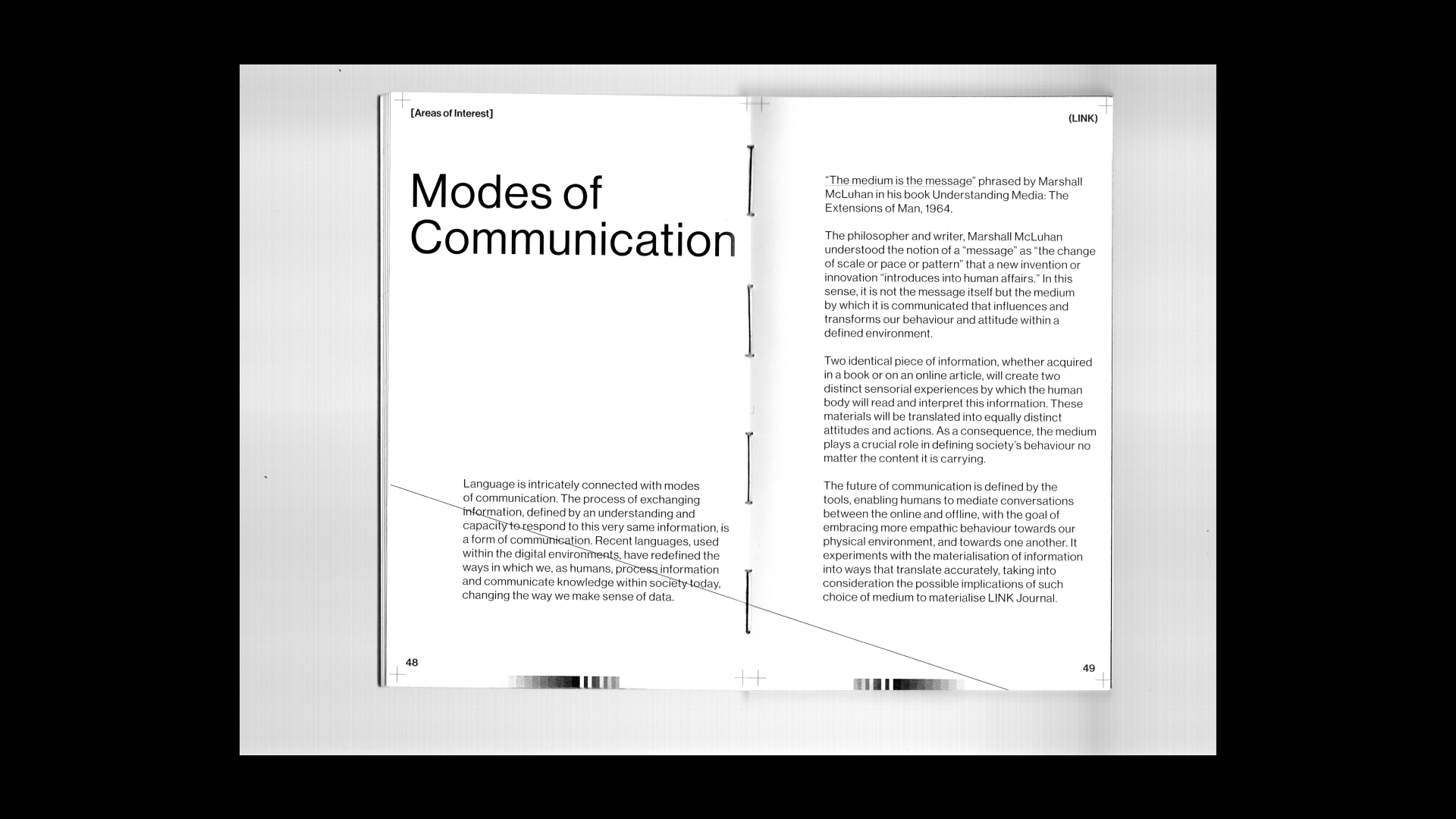 LINK Journal's first issue 'States of Matter' was developed as an open-source printed book, exploring the role of design practices and hybrid profiles using three main themes: 'in-between' spaces, modes of communication and translations within creative practices.